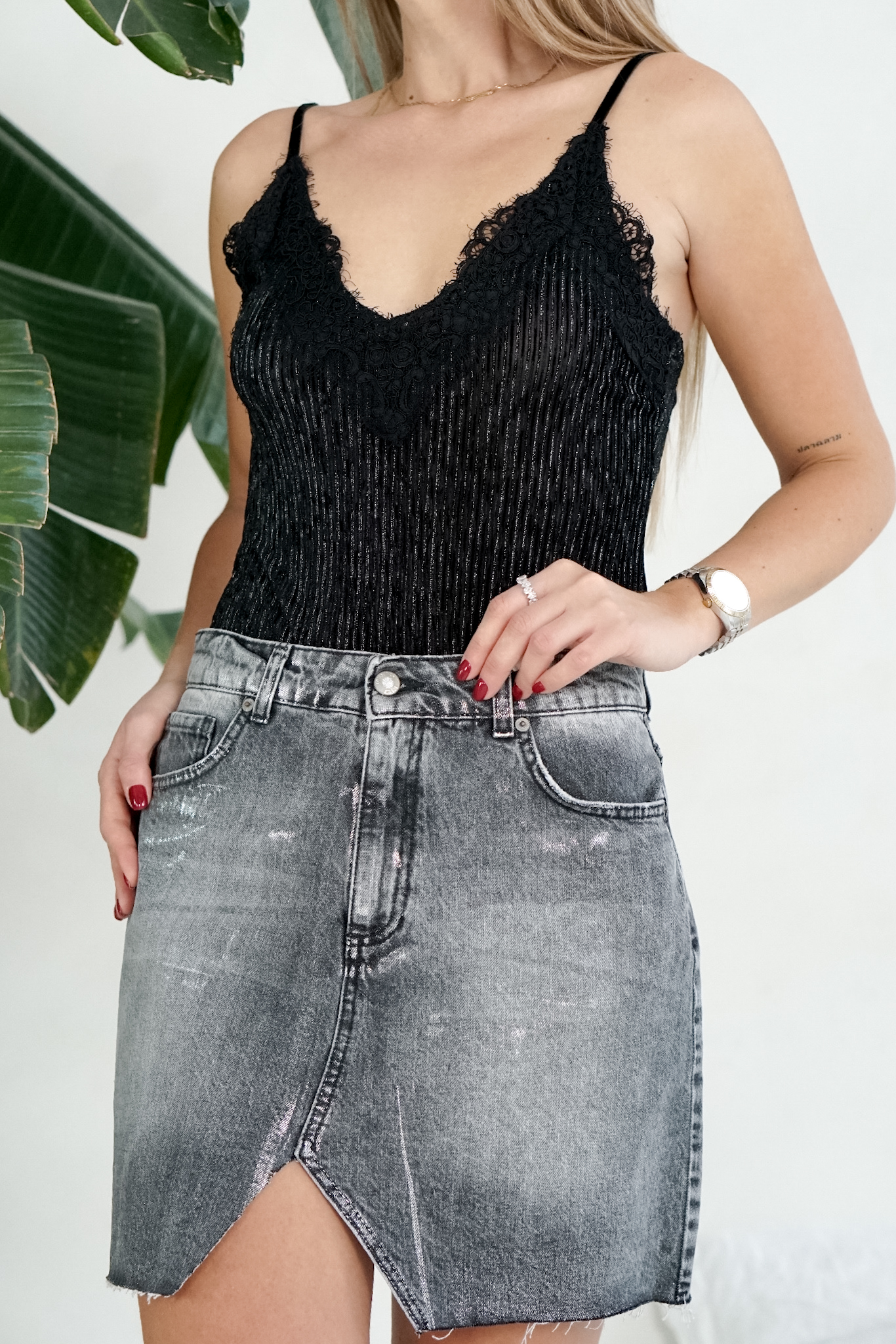 świetnie podkreśla sylwetkę. Wykończenie w postaci metalicznych wstawek dodaje charakteru i blasku.