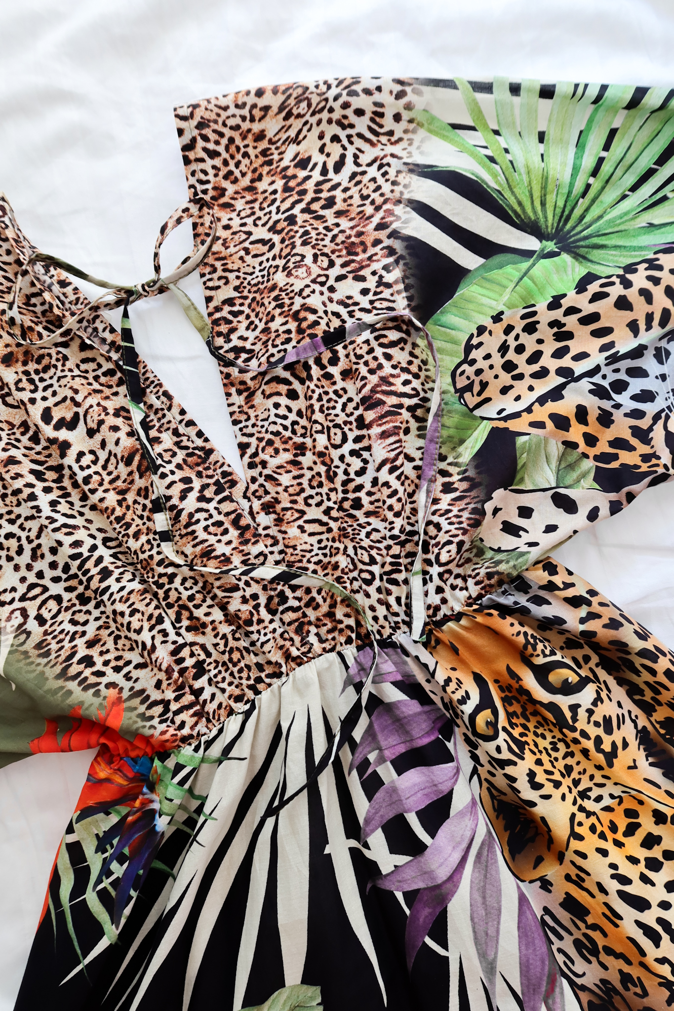 . Print w stylu jungle oraz ciekawy krój to idealny model na wakacje. Na plecach jest wiązanie, które pozwala na idealne dopasowanie się sylwetki.